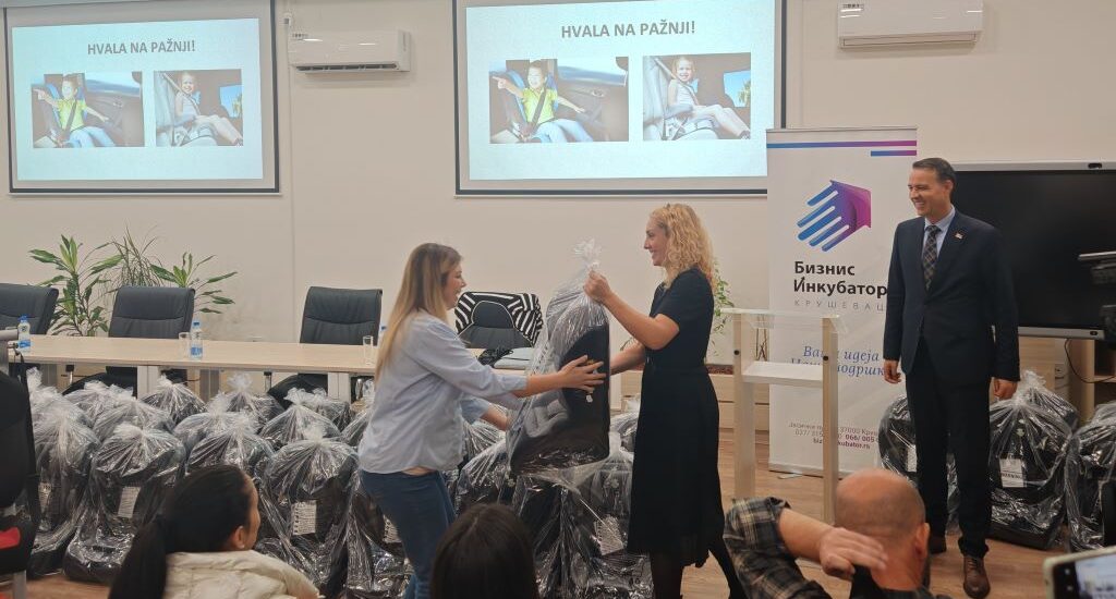 У Бизнис инкубатор центру, у оквиру акције Савета за безбедност саобраћаја, подељена су ауто седишта за децу. Ова акција је једна од бројних којима Савет жели да унапреди безбедност учесника у саобраћају, а овога пута реч је о најосетљивој групи, малишанима рођеним током прошле и ове године.