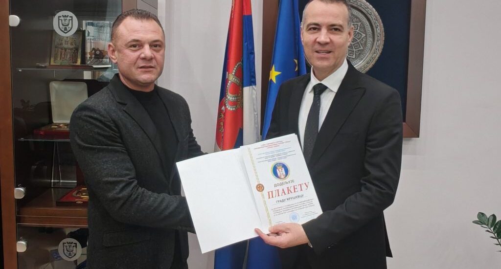Данас су председник градске организације Савеза удружења бораца народноослободилачких ратова Србије Бојан Томић и заменик председника, пуковник у пензији, Раде Рњаковић, у име председника СУБНОР Србије, генерала у пензији Љубише Диковића, уручили градоначелнику Крушевца Ивану Манојловићу признање и плакету те организације.